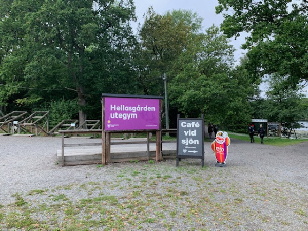Fika: | Det finns två trevliga caféer (Hellasgården och Sjöcaféet). Eller så tar man med sig picknick. |